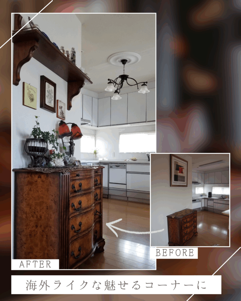 アンティーク サイドボードが彩る重厚感あふれるマンションインテリア/リビング ダイニング納品事例