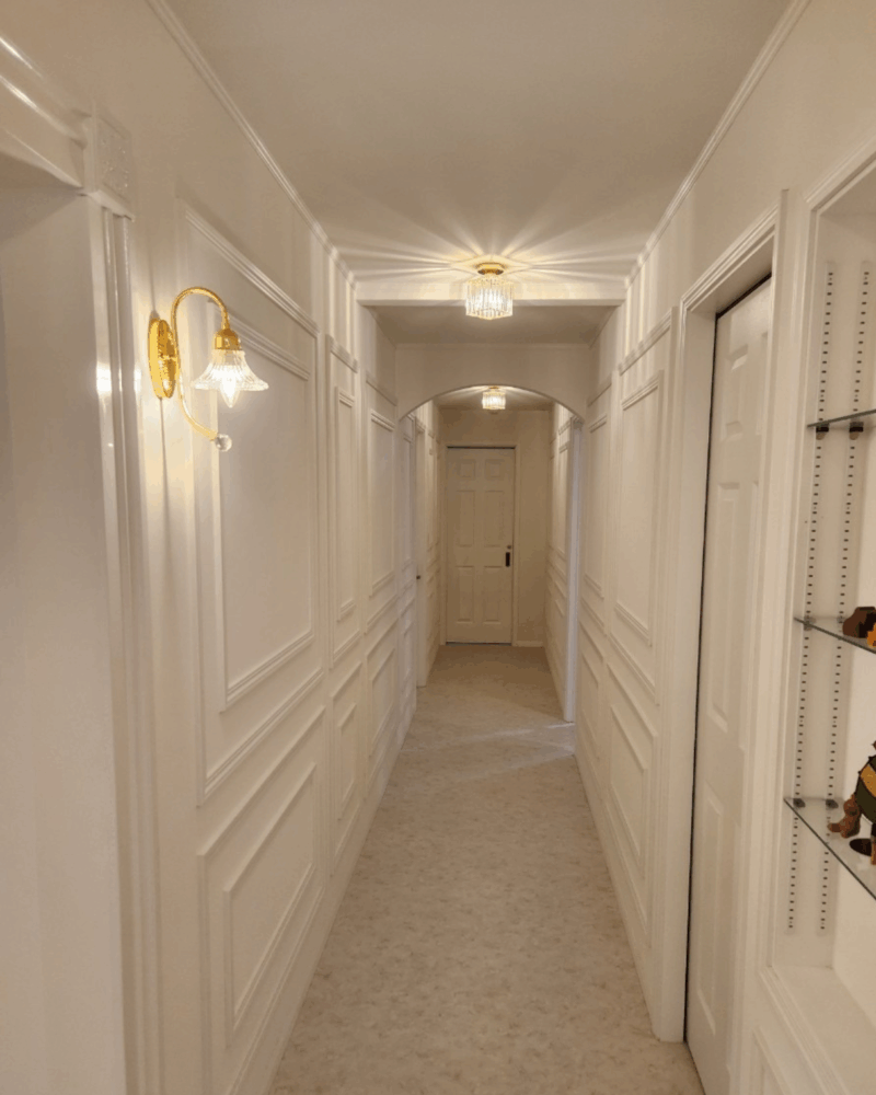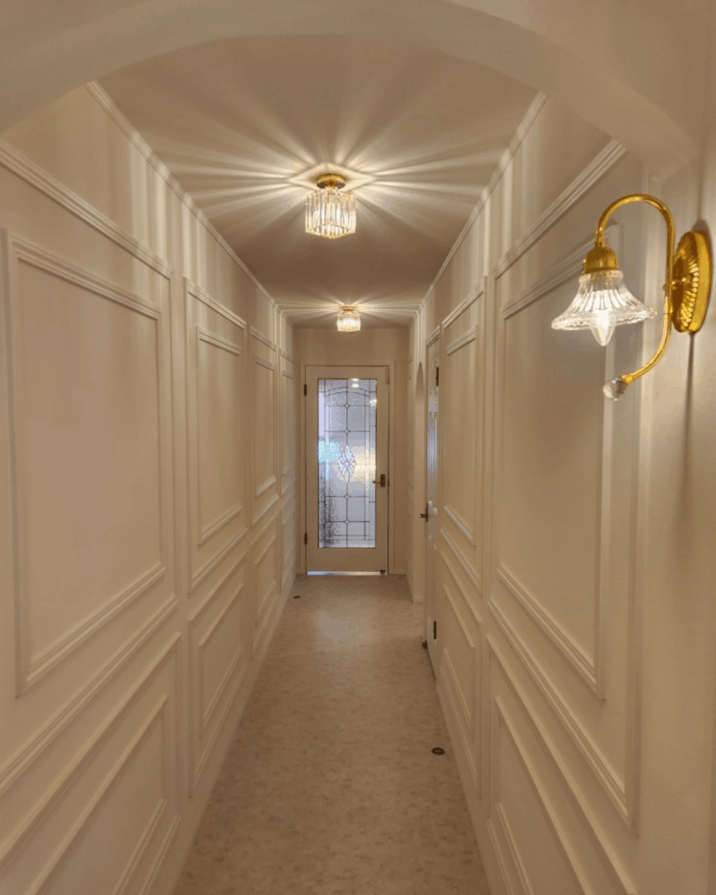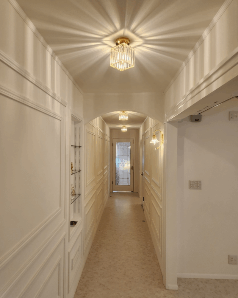 “ただの通路”ではなく、邸宅の中を優雅に巡る「光の回廊」へと仕上がりました。