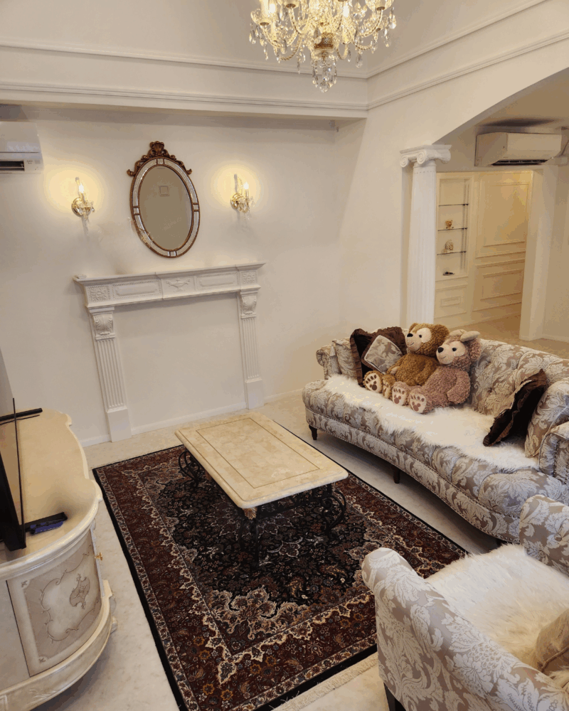 ソファや照明、テレビボード、ペルシャ絨毯など、以前ご購入いただいた家具が今回の空間にもピッタリ。“買い替えなくても、空間づくり次第でこんなに素敵に見えるんだ”と感じられる仕上がりです。