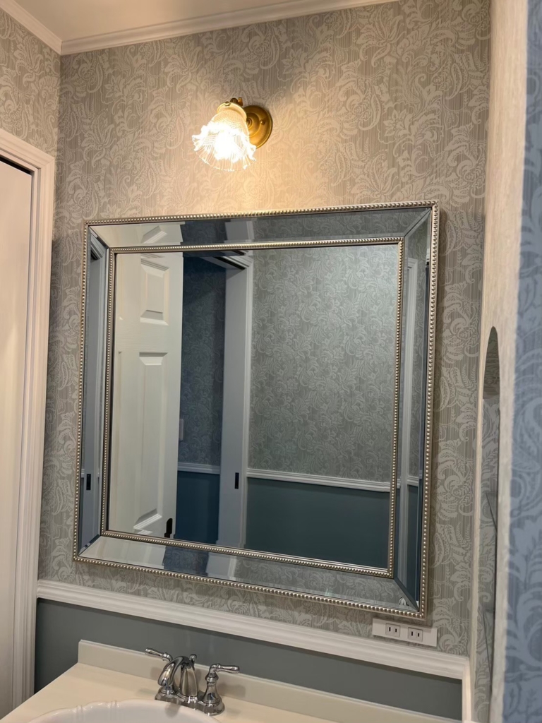今回はご新築のタイミングでご相談いただいたこともあり、照明の配線位置や取付高さ、ブラケットランプのバランス、ミラーを吊るす高さに至るまで、現場での見え方を想定しながら細かく指定・ご提案させていただきました。