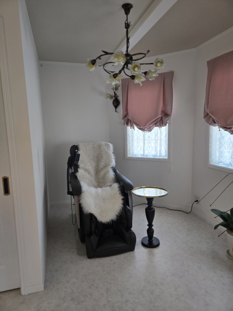 色は、空間になじむ白・ベージュ・ピンクの中から選んだ淡いピンク。家具や照明の優しいトーンととても相性がよく、“甘すぎない可愛い雰囲気”に仕上がりました。
