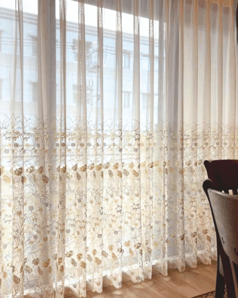 今回はドレープに人気のボタニカルなデザインの「ハニーサクル&チューリップ」を、レースは、細やかなデザイン柄の「バウワー」を採用しました。